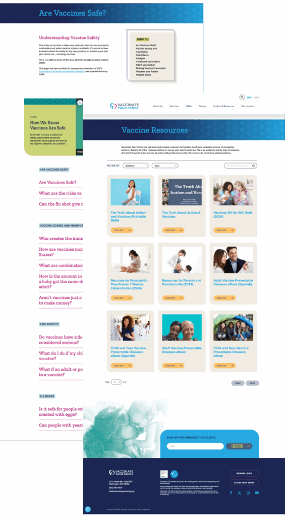The result is a website that serves as a true extension of Vaccinate Your Family’s mission on health and public safety. It’s a clean, intuitive, and highly functional platform that empowers families with knowledge and accessible information on their own vaccination journeys.